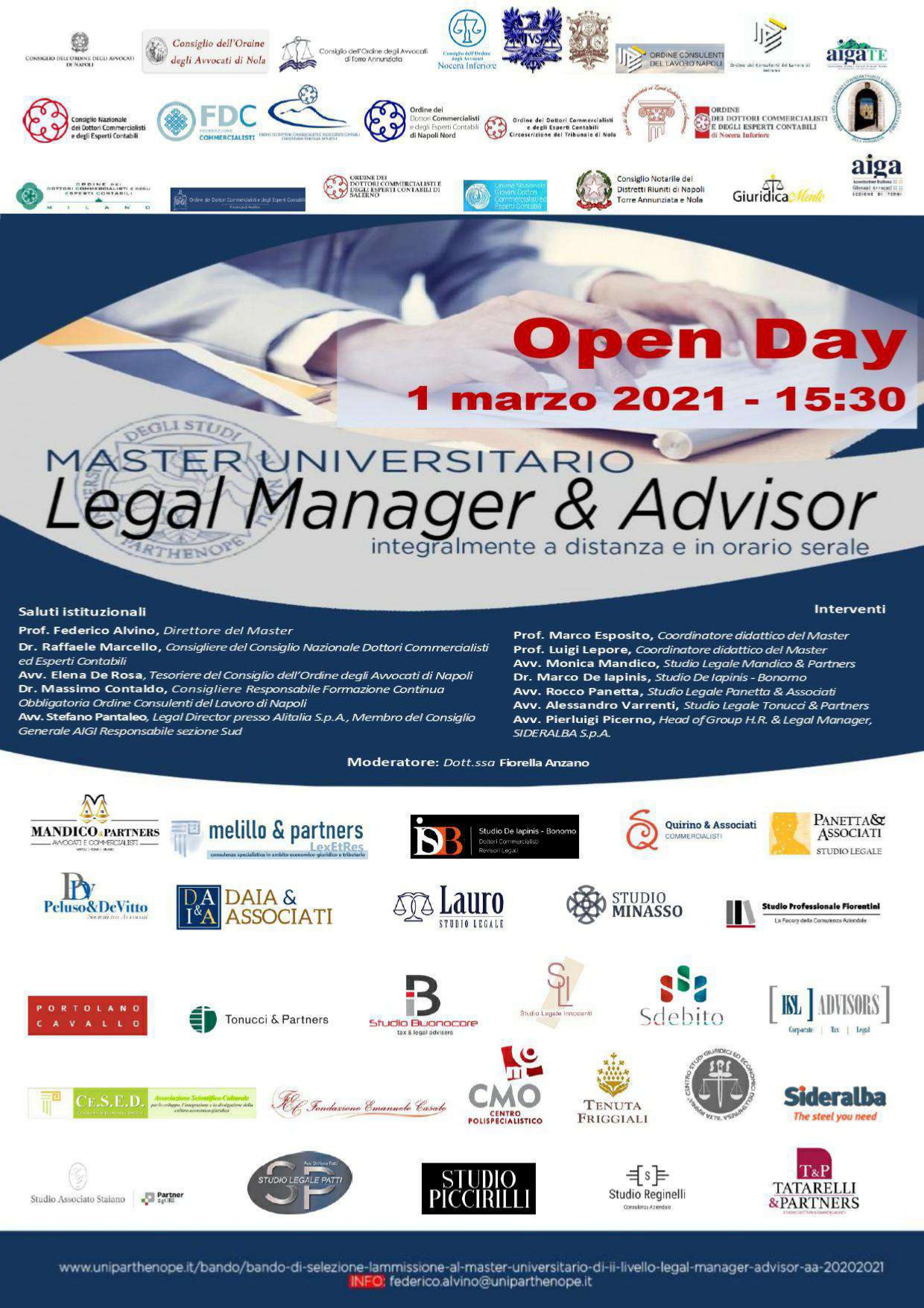 Il Dipartimento di Giurisprudenza dell’Università degli Studi di Napoli ‘Parthenope’ presenta il Master di II livello ‘Legal Manager & Advisor’ lunedì 1’ marzo alle ore 15,30 sulla piattaforma Microsoft teams – link: https://bit.ly/2ZHDpNY